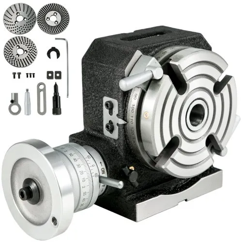 VEVOR Rotary Table 4inch(100mm) Horizontal Vertical Milling Table 2/5inch(10mm) 4-Slot Milling Rotary Table MT-2 Rotary Table for Milling with Indexing Plate Set for Precision Milling Drilling
