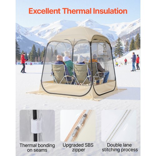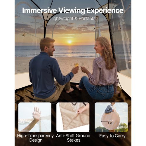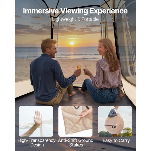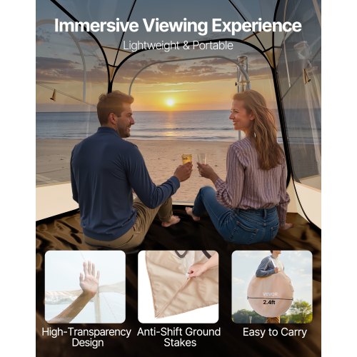 VEVOR Pop up Sports Tent, 72x72 in Clear Bubble Tent for 2-4 Persons, Waterproof Outdoor Pod with Floor Mat & Top Cover, Garden Igloo Dome Tents Camping Shelter for Events Fishing Cheering