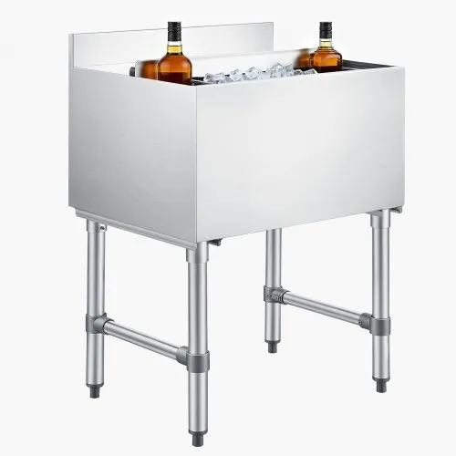 VEVOR Commercial Ice Bin, 28 L Underbar Ice Bin, 12 x 19 x 37 in Stainless Steel Ice Chest with Sliding Lid, Bottle Holders, Adjustable Bullet Feet, Cooler Cart Cocktail Unit for Bar Restaurant Pub