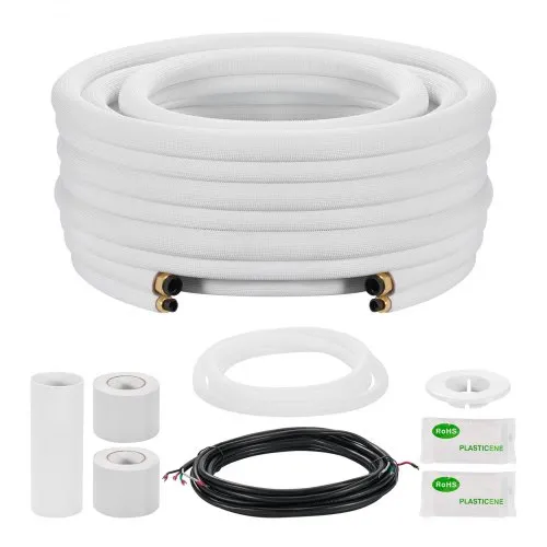 VEVOR 50ft Mini Split Line Set, 3/8” & 5/8” OD AC Copper Tubing Pipe, 3/8 White PE Thickened Insulated Coil with Flared Nuts, Rich Fittings, for Mini Split Air Conditioner HVAC or Heat Pump System