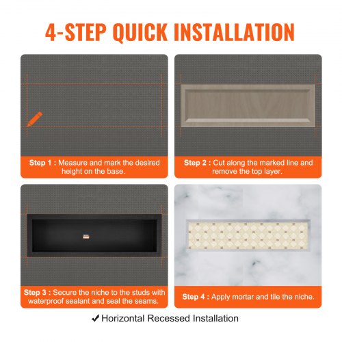 VEVOR Shower Niche Ready for Tile 16" x 16", Single Shelf Organizer, Square Corners Wall-inserted Niche Recessed, Sealed Protection Modern Soap Storage Niche for Shower Bathroom, Black