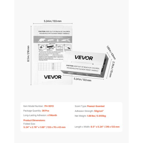 VEVOR Insect Glue Trap, 36 Pack Glue Boards, Peanut Scent, Foldable Design Sticky Pest Control Adhesive Sticky Traps Indoor for Home, Ready to Use for Catching Bugs, Ants, Roaches, Spiders, Centipedes