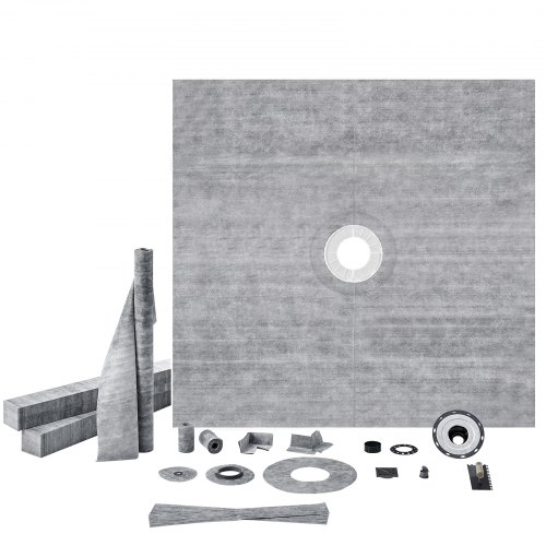 VEVOR Shower Curb Kit, 72"x72" Shower Pan Kit with 6.3" Central Drain, Lightweight EPS Shower Installation Kits with 2 Waterproof Cloths, Shower Pan Slope Sticks Fit for Bathroom