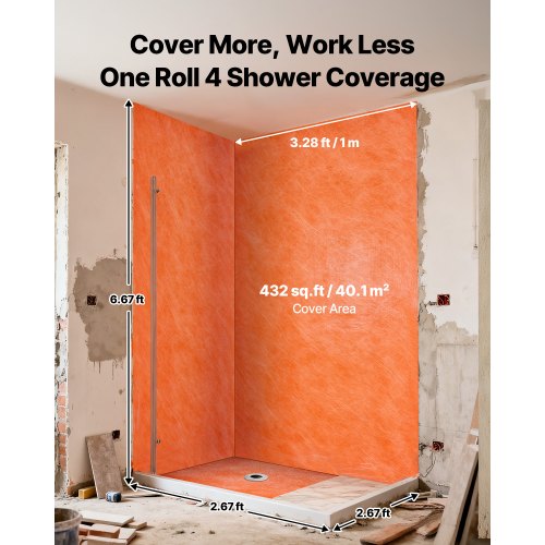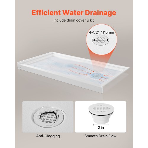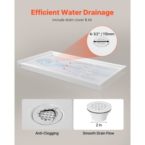 VEVOR Shower Curb Kit, 48"x72" Shower Pan Kit with 6.3" Central Drain, Lightweight EPS Shower Installation Kits with 2 Waterproof Cloths, Shower Pan Slope Sticks Fit for Bathroom