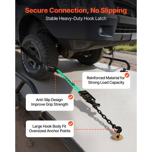 VEVOR Wheel Chock Tie-Down Kit, Tire-Style Tow Dolly Strap, Car Tie Down Kit with Heavy-Duty Hook, Break Strength 10009 lbs & Working Load 3333 lbs Motorcycle Tie-Down System for ATV, SUV, Trailer