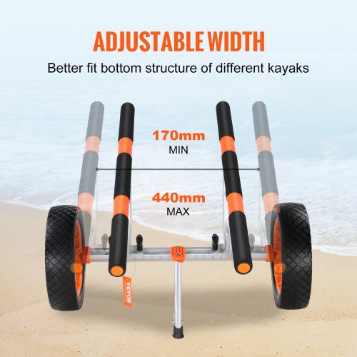 VEVOR Heavy Duty Kayak Cart, 450lbs Load Capacity, Detachable Canoe Trolley Cart with 12'' Solid Tires, Adjustable Width & Nonslip Support Foot, for Kayaks Canoes Paddleboards Float Mats Jon Boats