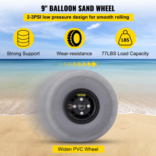VEVOR Beach Balloon Wheels, 9\" Replacement Sand Tires, PVC Cart Tires for Kayak Dolly, Canoe Cart and Buggy with Free Air Pump, 2-Pack