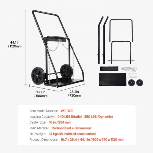 VEVOR Dual Welding Cylinder Cart, Oxygen Acetylene Tank Cart with 440LBS Static Weight Capacity, 10-Inch Solid Wheels and Tank Storage Safety Chains, Suitable for Double 12.5-Inch Dia. Gas Cylinders