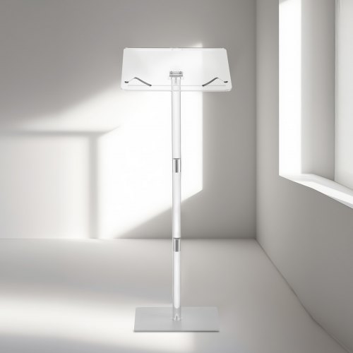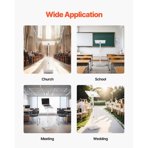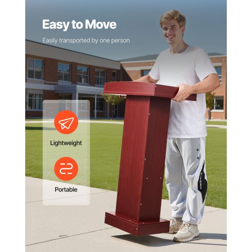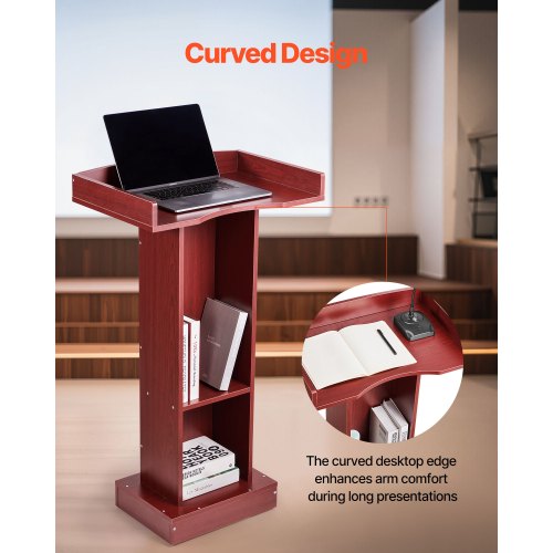 VEVOR Podium Stand, 43-Inch Wooden Lectern, Portable Laptop Desk with Lockable Wheels, Wide Reading Surface and Open Storage Area, Adjustable Height and Angle, for Speeches, Lectures, or Presentations