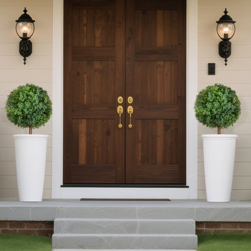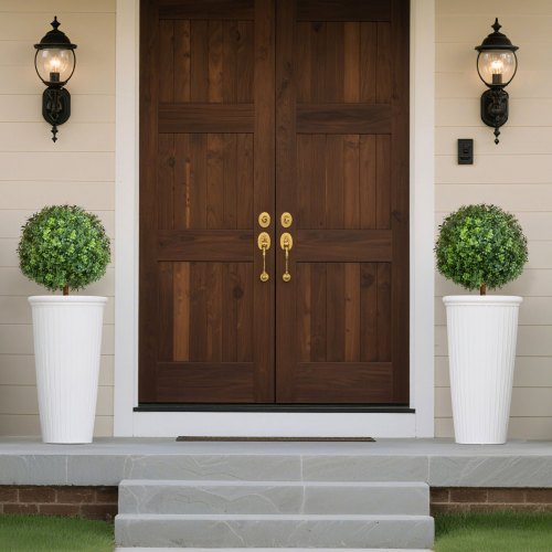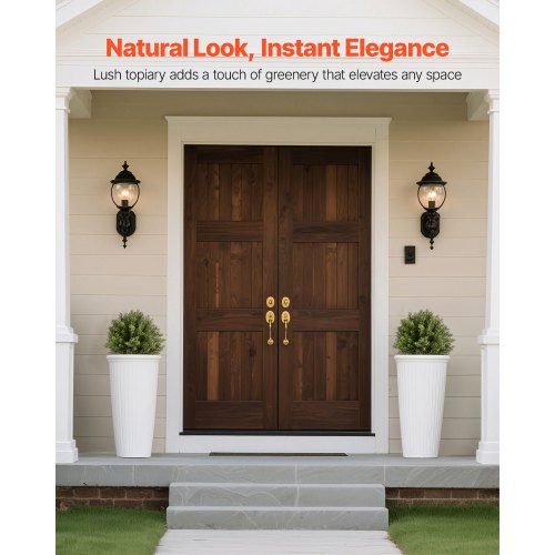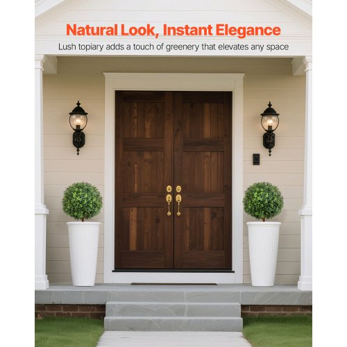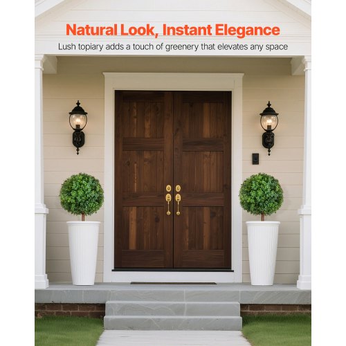 VEVOR Artificial Topiary Boxwood Trees with Ground Spike, 27 inch 2 Set Faux Shrubs & Bushes Potted Plants, Fake Silk Tree Look Real for Decor Front Porch Outdoor Indoor Patio Garden Balcony Backyard