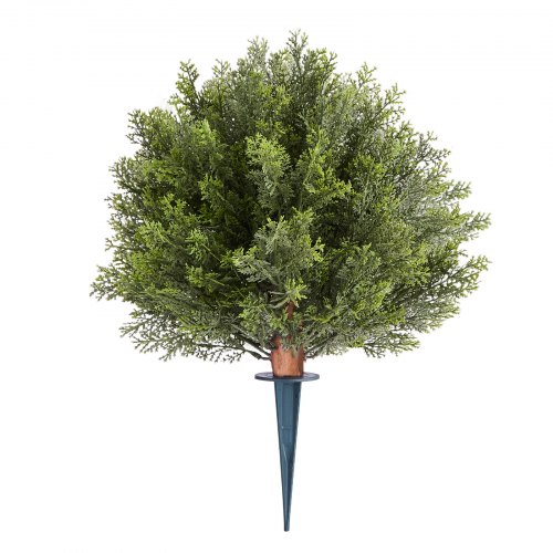 VEVOR Artificial Topiary Cypress Trees with Ground Spike, 16 inch 2 Set Faux Shrubs & Bushes Potted Plants, Fake Silk Tree Look Real for Decor Front Porch Outdoor Indoor Patio Garden Balcony Backyard