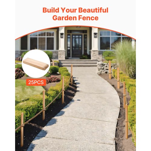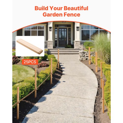 VEVOR Wooden Garden Stakes, 25 Pcs 24 x 0.5 x1.5 in Survey Grading Stakes, Garden Ground Stake with Sharp Point, Fir Wood Plant Support Stake, Sign Posts for Silt Fence Backyard Boundaries Baselines
