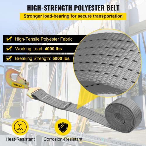 VEVOR Ratchet Tie Down Straps, 2\'\' x 15.6\' Heavy Duty Ratchet Straps with Snap Hooks, 4000 lbs Working Load, 4 Pack Tie Down Set Includes 8 Axle Straps for Moving Motorcycle, Cargo & Daily Use