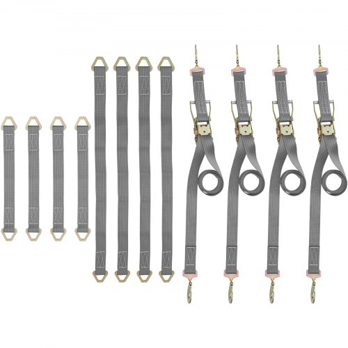 VEVOR E-Track Tie-Down Rail Kit, 4 Pack 1.3 ft E Tracks Set, 21 Pcs Includes 2 Ratchet Straps & 4 O-Rings & 4 Tie-Offs with D-Ring & 2 Single Slots & 8 End Caps & 1 Bag, Fit for Garages Vans Trailers