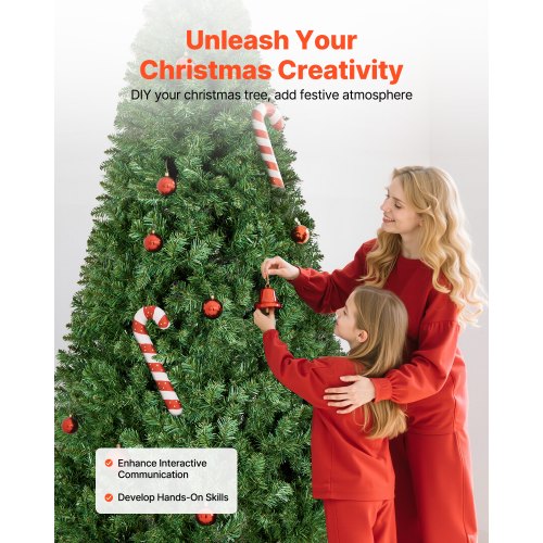 VEVOR Christmas Tree, 7.2ft Artificial Xmas Tree, Full Holiday Decor Trees with 1346 Branch Tips & Sturdy Metal Base for Home Party Office Decoration