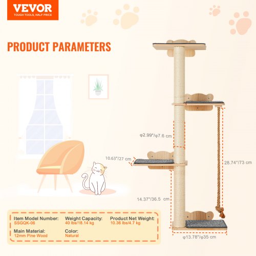 VEVOR Gym Climbing Rope, 1.5" Diameter 10 ft Length Gym Fitness Training Rope, Gym Exercise Workout Rope for Adults, Climbing Rope for Fitness and Strength Training, Climbing Exercise, Home Workout
