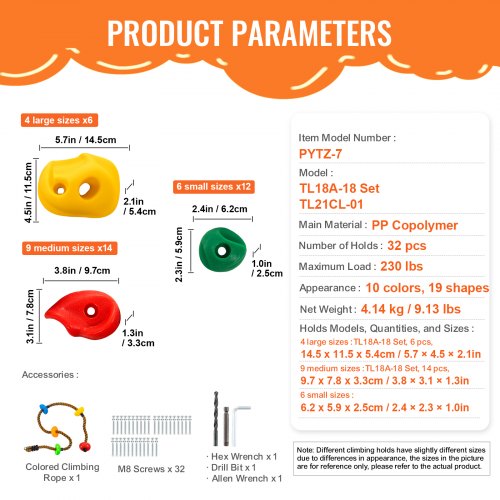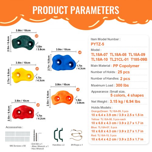 VEVOR 25 Rock Climbing Holds, Multi-Size and Multi-Colored Climbing Rocks for Kids and Adults, Rock Wall Holds with Mounting Hardware, Climbing Wall Grips for Indoor and Outdoor Playground Play Set