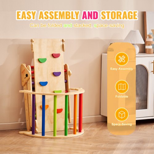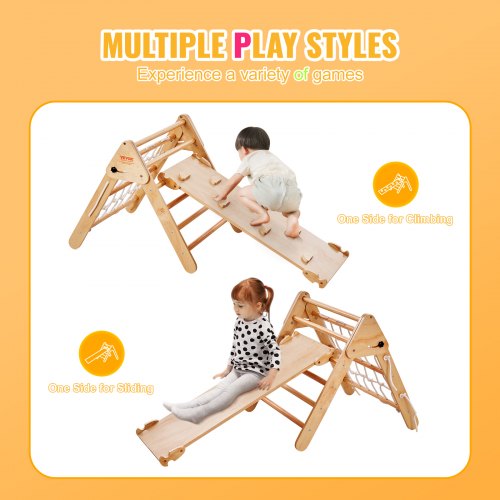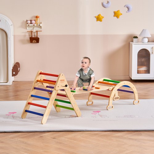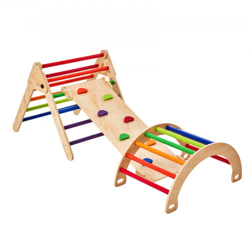 VEVOR Pikler Triangle Set, 5 in 1 Toddler Climbing Toys Indoor Playground, Ramp, and Arch, Montessori Climbing Set with Triangle, Medium Size Wooden Climbing Gym for Toddlers 1-3 Years, Colorful