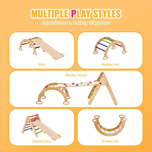VEVOR Pikler Triangle Set, 5 in 1 Toddler Climbing Toys Indoor Playground, Large Size Wooden Climbing Gym for Toddlers 1-3 Years, Montessori Climbing Set with Triangle, Ramp, and Arch, Colorful