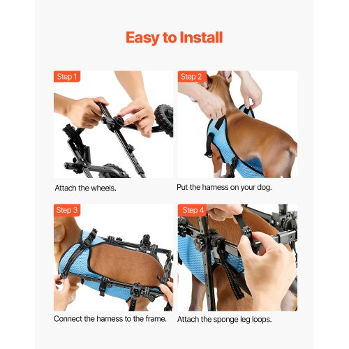 VEVOR Dog Wheelchair for Back Legs, Lightweight 2 Wheels Pet Wheelchair, Height, Width & Length Adjustable, Dog Cart with Shock-Absorbing Wheels, for Injured, Disabled Dogs 35-48 lbs, Medium