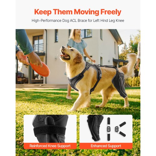 VEVOR Dog Knee Brace for Torn ACL, Dog Leg Brace with Adjustable Hinge Stabilizer, Pet Knee Support Harness for Left Hind Leg, Pain Relief, Reflective Dog Joint Support Brace for Arthritis Recovery