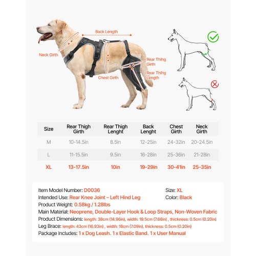 VEVOR Dog Knee Brace for Torn ACL, Dog Leg Brace with Adjustable Hinge Stabilizer, Pet Knee Support Harness for Right Hind Leg, Pain Relief, Reflective Dog Joint Support Brace for Arthritis Recovery