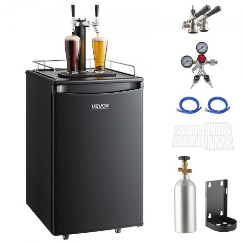 VEVOR Beer Kegerator, Dual Tap Draft Beer Dispenser, Full Size Keg Refrigerator With Shelves, CO2 Cylinder, Drip Tray & Rail, 32°F- 75.2°F Temperature Control, Holds 1/6, 1/4, 1/2 Barrels, Black