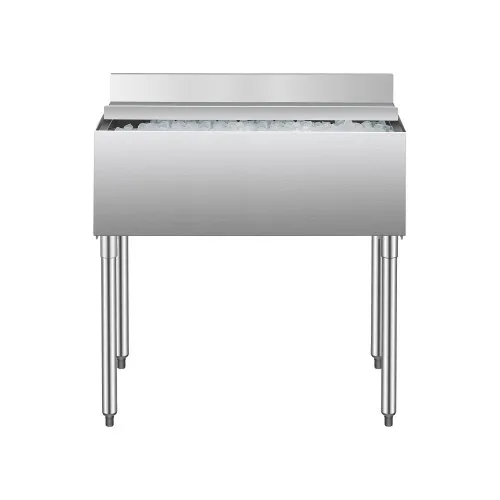 VEVOR Commercial Ice Bin, 61.6 L Underbar Ice Bin, 24 x 24.2 x 37 in Stainless Steel Ice Chest with Sliding Lid, Bottle Holders, and Adjustable Bullet Feet, Cocktail Unit for Bar, Restaurant & Pub
