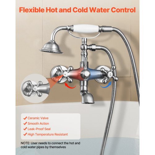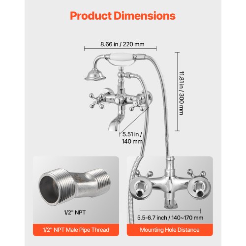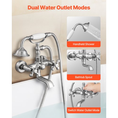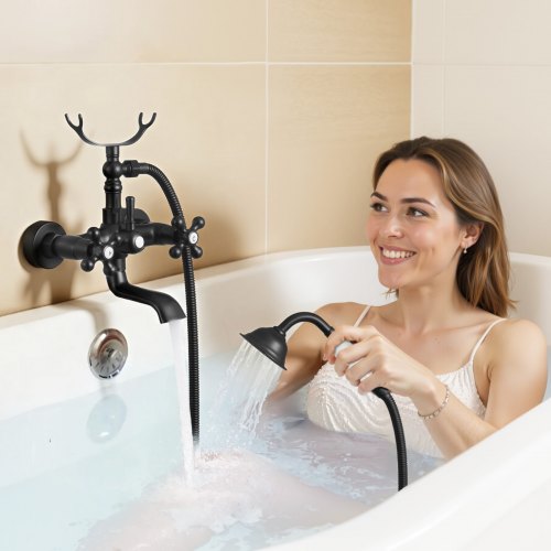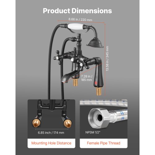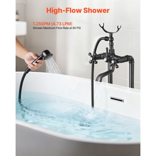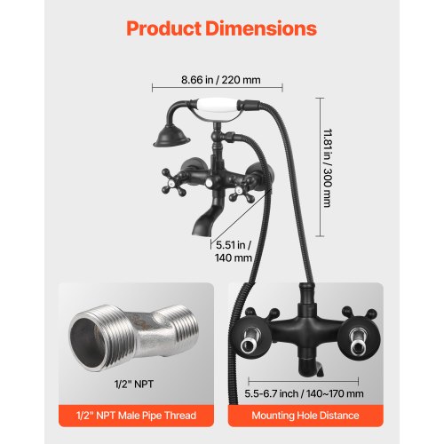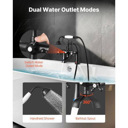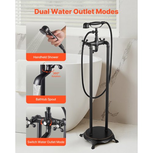 VEVOR Clawfoot Tub Faucet, Deck Mount Bathtub Faucets with Handheld Shower, Vintage Oil-Rubbed Bronze Clawfoot Tub Filler Faucet Shower Kit with 360° Rotation Spout & 59-inch Long Hose for Bathtubs