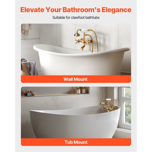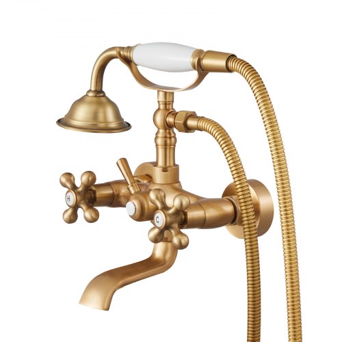 VEVOR Clawfoot Tub Faucet, Wall Mount Bathtub Faucets with Handheld Shower, Vintage Brushed Gold Clawfoot Tub Filler Faucet Shower Kit with Adjustable Swing Arms & 360° Rotation Spout for Bathtubs