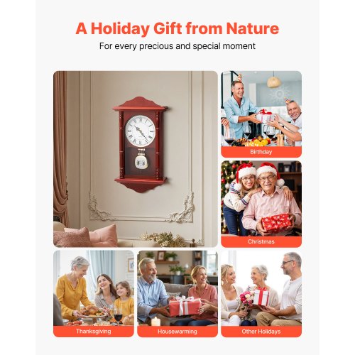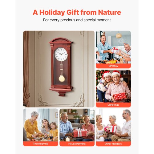 VEVOR Grandfather Clock, 18 in Classic Vintage Pendulum Clock, Pine Wood & MDF Wall Clocks with Quartz Movement and Quiet Design, for Living Room, Bedroom, Home Decor, and Gift (Cherry Tone Finish)