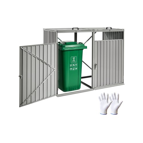 VEVOR Trash Can Storage, 2 x 52.79 Gal Trash Bin Storage Shed Outdoor, Galvanized Steel Horizontal Storage Cabinet Waterproof, Lockable Garbage Can Storage Shed, for Garden, Backyard and Patio Use