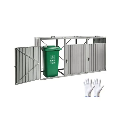 VEVOR Trash Can Storage, 3 x 52.79 Gal Trash Bin Storage Shed Outdoor, Galvanized Steel Horizontal Storage Cabinet Waterproof, Lockable Garbage Can Storage Shed, for Garden, Backyard and Patio Use