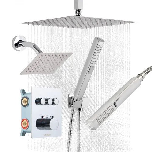 VEVOR Shower Panel Tower System with Rainfall Waterfall Shower Head, LED, 53 in Brushed Stainless Steel Shower Column, 5-Function Faucet, Wall-Mount Rain Massage System, with Handheld, Tub Spout