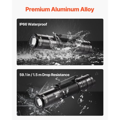 VEVOR Rechargeable Flashlight, High Lumens LED Flashlight with 6 Lighting Modes, IP66 Waterproof Handheld Flash Light for Home, Hiking, Camping, Emergencies, Lightweight & Portable