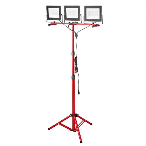 VEVOR LED Work Light with Stand, 15000 Lumens, Three-Head Portable Camping Light with Individual Switch, Tripod Stand, 10.83 ft Power Cord, for Indoor Outdoor Job Site Construction, IP65 Waterproof