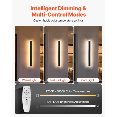 VEVOR Outdoor Wall Lights, 2 Pack, 23.6 Inch Long Strip Modern Exterior Wall Sconce Light Fixtures, 2700K-6000K, IP65 Waterproof Anti-Rust, Dimmable Outside Wall Mount Lighting, for House Porch Garage
