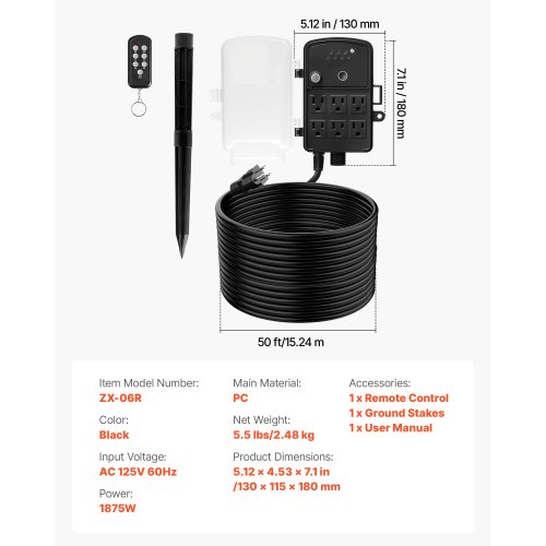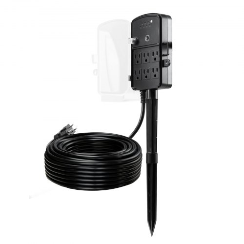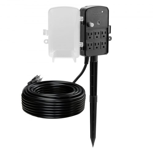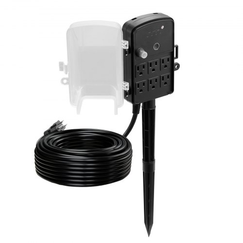 VEVOR Outdoor Power Stake, 50FT Extension Cord, Outdoor Power Strip Weatherproof with Cover, Remote Control Dusk to Dawn Light Timer Waterproof, 6 Outlets, 1875W/15A, for Christmas Lights, Garden
