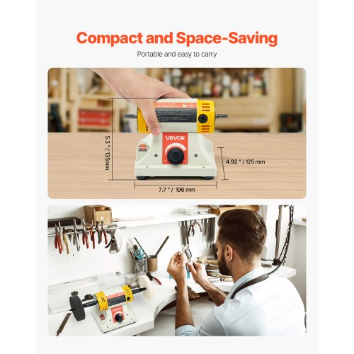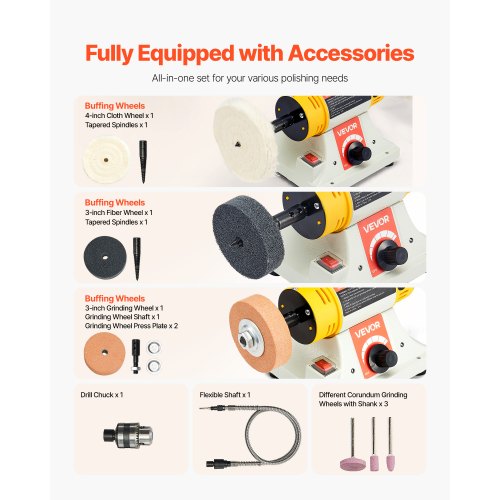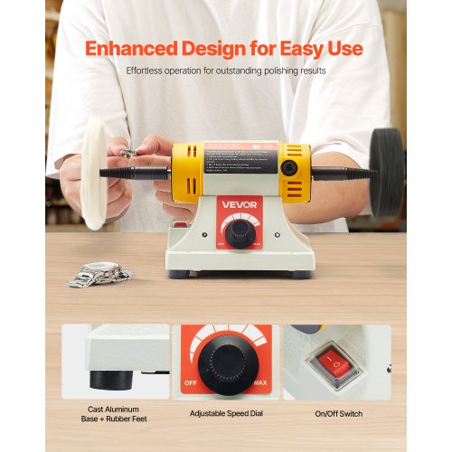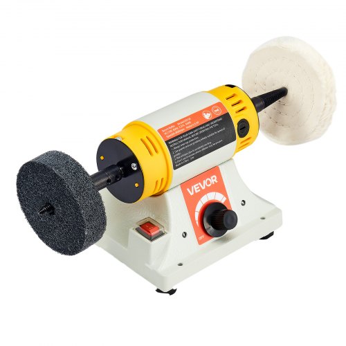 VEVOR Bench Buffer Polisher, 1/2HP Polishing Buffing Machine, 0 to 8000RPM Benchtop Polisher Grinder with 4" Cloth Wheel, 3" Grinding Wheel & 3" Fiber Wheel for Metal, Jewelry, Wood and Plastic