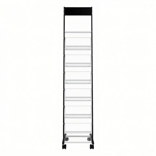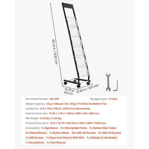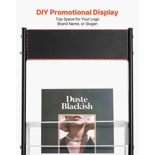 VEVOR Brochure Display Rack, Narrow 6-Tier Magazine Literature Display Stand with Wheels, Metal Floor Standing Magazine Rack, Movable Newspaper Catalog Holders for Shop Exhibitions Office (6 Pockets)