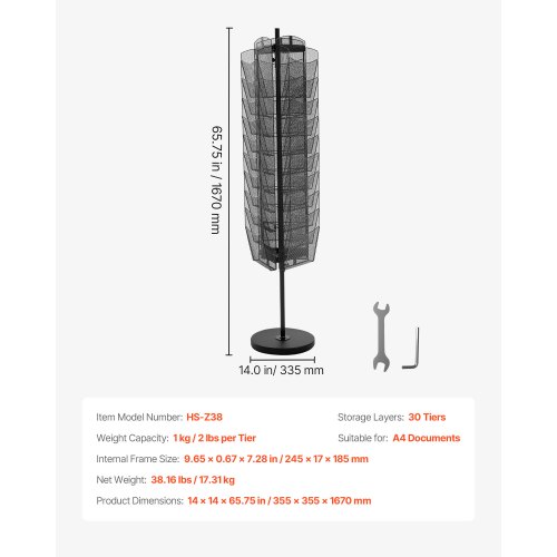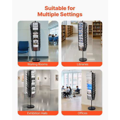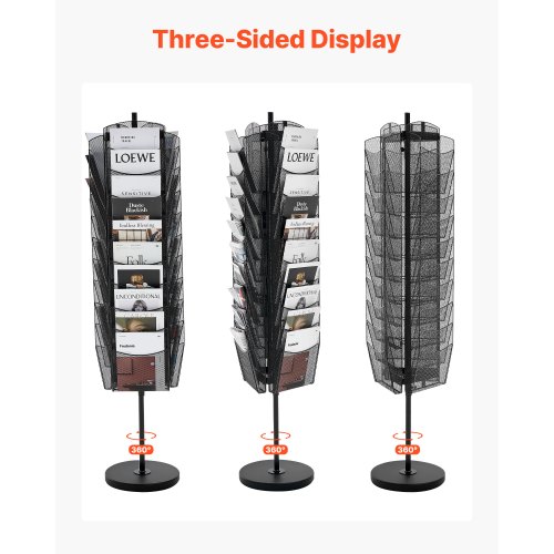 VEVOR Rotating Brochure Display Rack, 30 Pockets Mesh Magazine Literature Display Stand, Portable Floor Standing Magazine Rack, Metal Newspaper Catalog Holders for Shop Exhibitions Office Trade Show