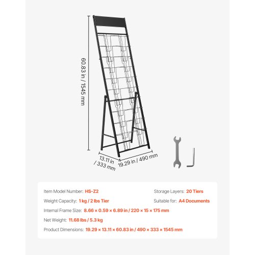 VEVOR Brochure Display Rack, 20 Pockets Magazine Literature Display Stand, Portable Floor Standing Magazine Rack, Metal Newspaper Catalog Holders for Shop, Exhibitions, Office, Trade Show, Black