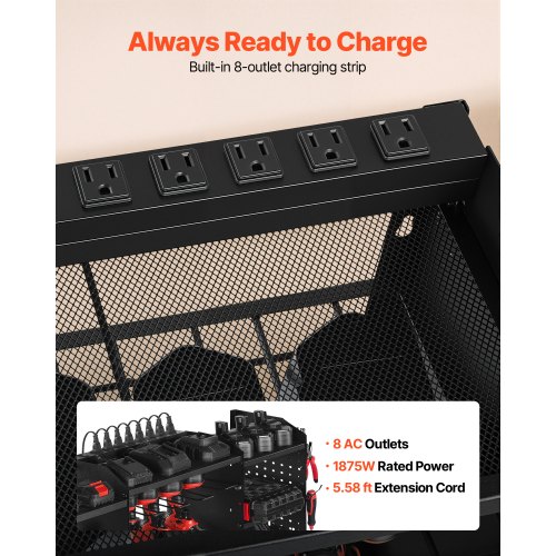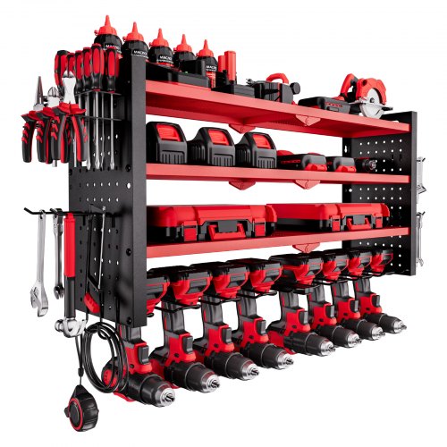 VEVOR Power Tool Organizer Wall Mount, 4-Layer Storage Rack with 8 Drill Holders, Tools Holder and Storage Rack with Side Pegboards, Garage Tool Organizer for Garage, Workbench, and Workshop