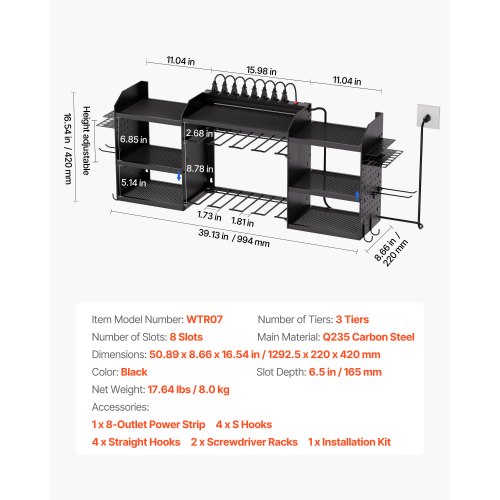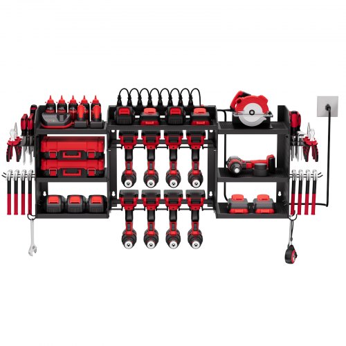 VEVOR Power Tool Organizer Wall Mount, 4-Layer Storage Rack with 8 Drill Holders, Tools Holder and Storage Rack with Screwdriver Holder, Garage Tool Organizer for Garage, Workbench, and Workshop