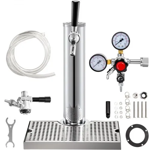 VEVOR Kegerator Tower Kit, Single Tap Beer Conversion Kit, No Tank Keg Conversion Kit, Stainless Steel Keg Tower, Deluxe Kegarator Beer Conversion With Dual Gauge Regulator & D-System Keg Coupler