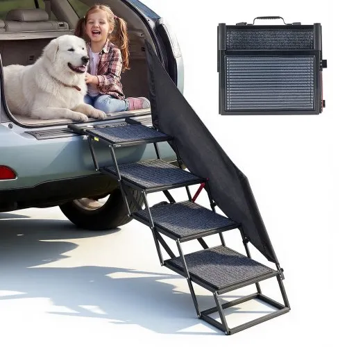 VEVOR Dog Stair for Cars, Wide 4-step Dog Car Steps, Folding Dog Car Ramp with Nonslip Surface, Portable Pet Steps Lightweight Aluminum for Car, SUV and Truck, Supports up to 150 lbs