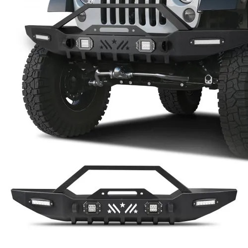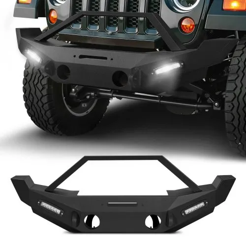VEVOR Front Bumper Compatible with 2007-2018 Wrangler JK/JKU, Heavy-Duty Steel Front Bumper with 2PCS LED Light Bars, Winch Plate, Fog Light Housing and D-Ring Mounts
