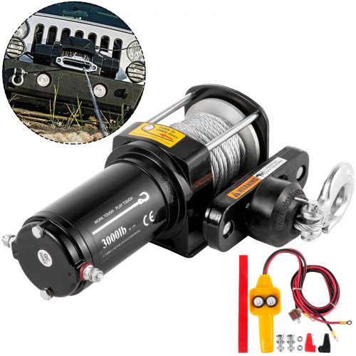 VEVOR Truck Winch 3,000LBS Electric Winch 10m Steel Cable 12V Power Winch Jeep Winch with Wireless Remote Control and Powerful Motor for UTV ATV & Jeep Truck and Wrangler Accessories in Car Lift