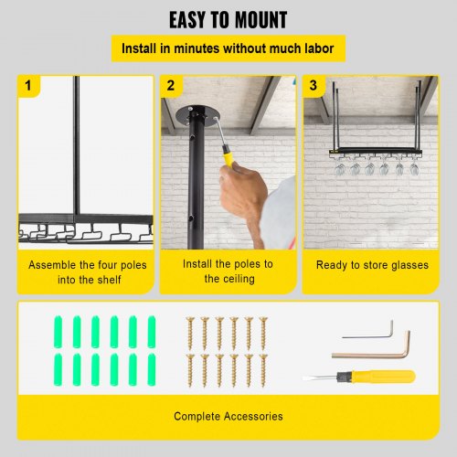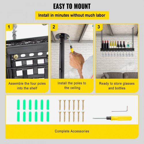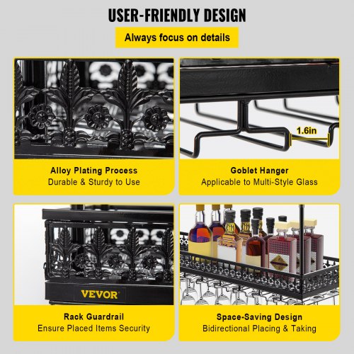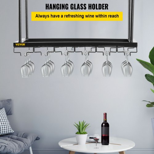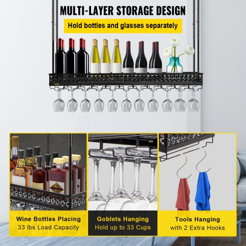 VEVOR Ceiling Wine Glass Rack, 46.9 x 13 inch Hanging Wine Glass Rack, 18.9-35.8 inch Height Adjustable Hanging Wine Rack Cabinet, Black Wall-Mounted Wine Glass Rack Perfect for Bar Cafe Kitchen