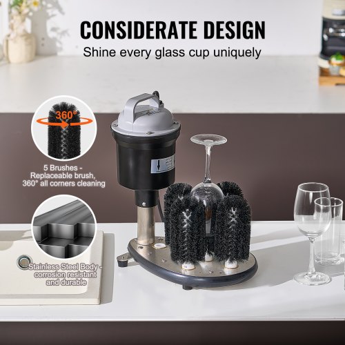 VEVOR Electric Glass Washer 5-Brush Bar Glass Cleaner 600 Cups/H for Wine Glass